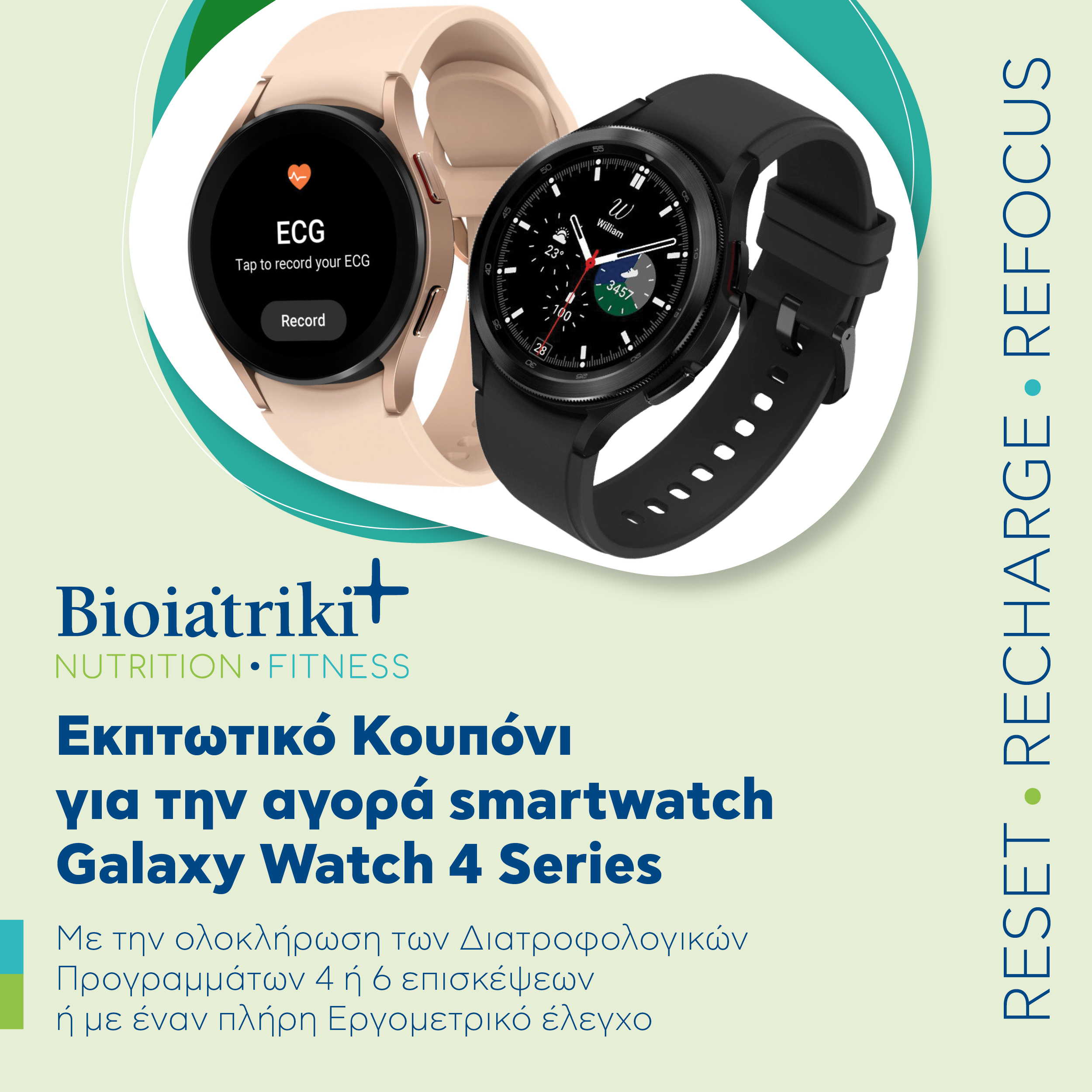 Επιπλέον, όσοι επισκέπτονται το Bioiatriki+ στις εγκαταστάσεις του Ομίλου στη Λεωφόρο Κηφισίας 132, στον 6ο όροφο, έχουν τη δυνατότητα να ανακαλύψουν από κοντά τη σειρά Samsung Galaxy Watch4 και να επωφεληθούν από εκπτωτικά κουπόνια για την αγορά του smartwatch.