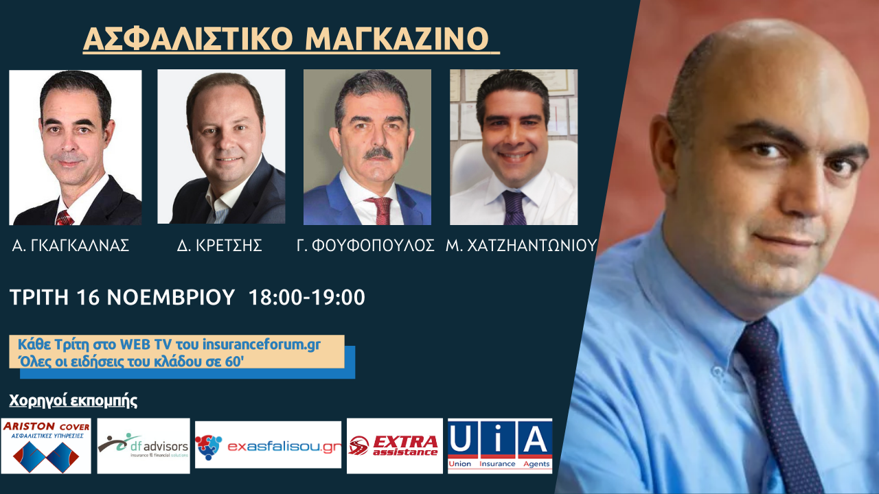 Παρακολουθήστε την εκπομπή από το ανανεωμένο insuranceforum web tv, από τη σελίδα μας στο Facebook, από το κανάλι μας στο Youtube.