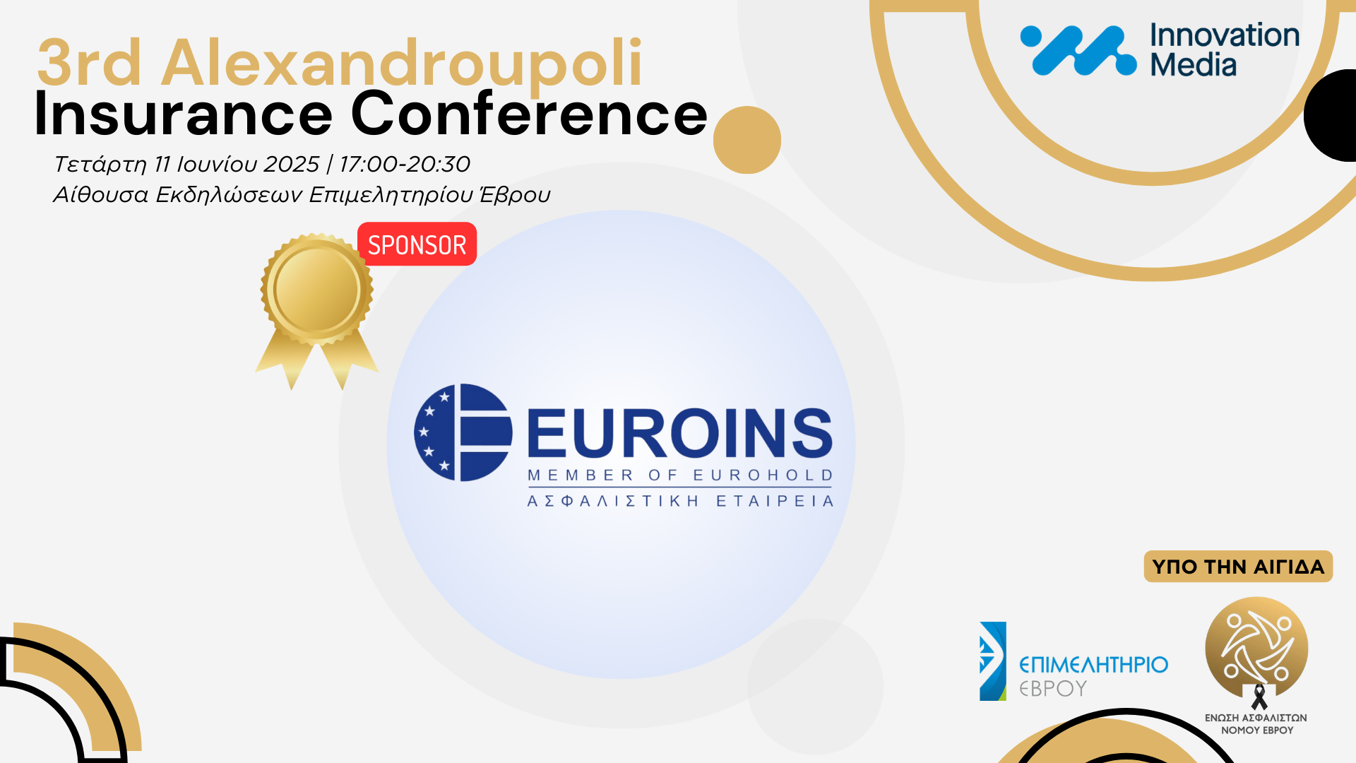 Η Euroins Ελλάδος συμμετέχει ως Χρυσός Χορηγός στο 3ο Alexandroupoli Insurance Conference, που θα πραγματοποιηθεί την Τετάρτη 11 Ιουνίου 2025, στην αίθουσα εκδηλώσεων του Επιμελητηρίου Έβρου, στην Αλεξανδρούπολη.