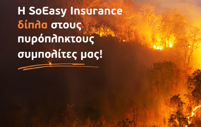 Κατανοώντας τη δύσκολη στιγμή που περνούν οι πληγέντες, στη SoEasy Insurance μαζί με την Γαλλική Ασφαλιστική Εταιρεία AXERIA τα ασφαλιστικά προϊόντα της οποίας διανέμουμε, αποφασίσαμε από κοινού να προσφέρουμε έκτακτη και ΑΜΕΣΗ οικονομική ενίσχυση ύψους €750 σε όλους τους ασφαλισμένους μας που επλήγησαν από τις πυρκαγιές και η κατοικία τους δεν είναι σε κατοικήσιμη κατάσταση, για την άμεση ανακούφιση των πρώτων αναγκών τους.