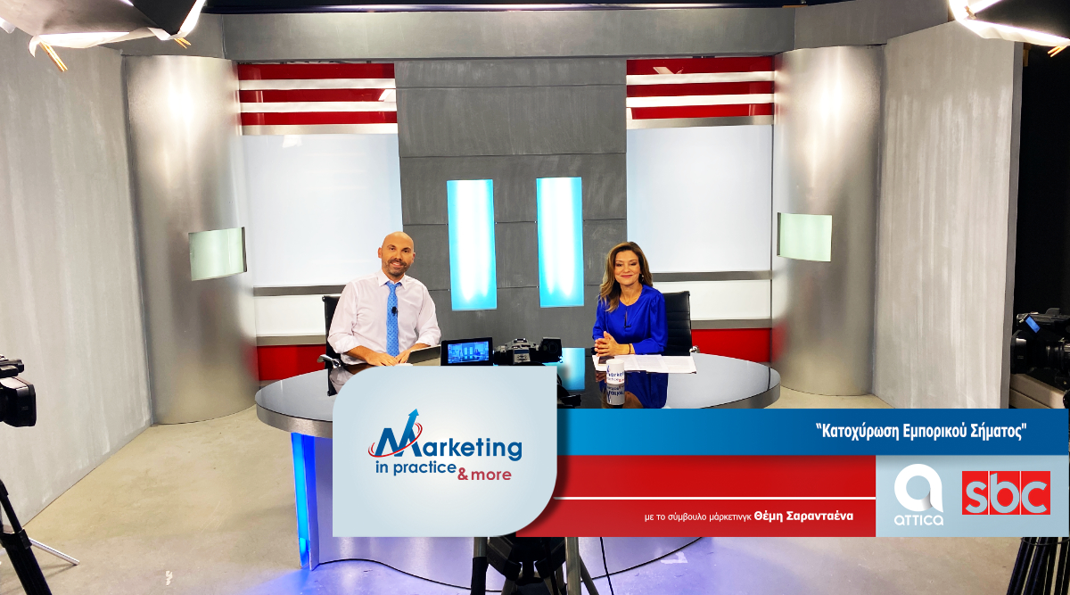 Στο νέο επεισόδιο της τηλεοπτικής εκπομπής Marketing in Practice o σύμβουλος μάρκετινγκ Θέμης Σαρανταένας με καλεσμένη στο studio του Attica TV/SBC TV Channel την Δικηγόρο Διαμεσολαβήτρια Νανά Παπαδογεωργάκη, συζητούν για την ανάγκη αλλά και την διαδικασία κατοχύρωσης του Εμπορικού Σήματος (Λογοτύπου) μιας επιχείρησης.