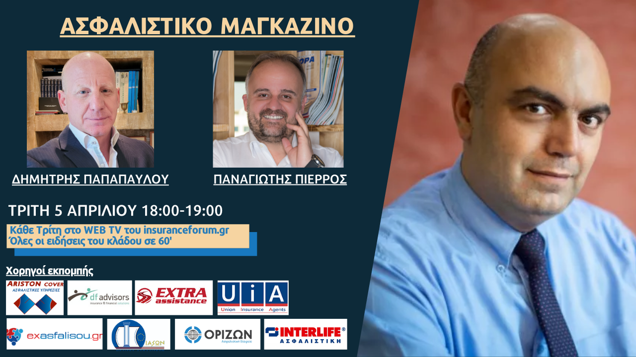 Παρακολουθήστε την εκπομπή από το ανανεωμένο insuranceforum web tv, από τη σελίδα μας στο Facebook, από το κανάλι μας στο Youtube.