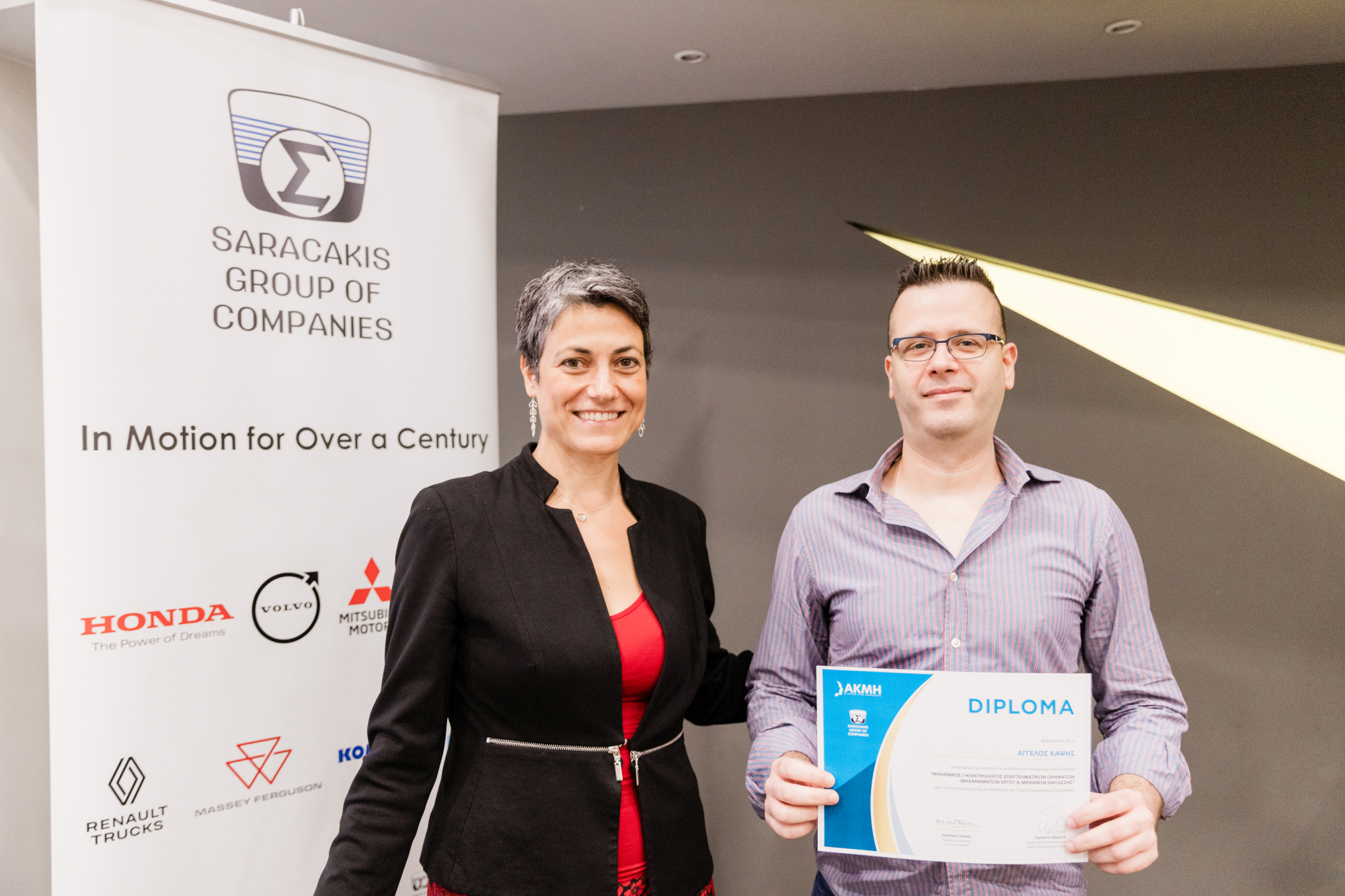 «Σήμερα, υποδεχόμαστε τη δεύτερη σειρά αποφοίτων του προγράμματος και τους καλωσορίζουμε στον δυναμικό κλάδο της αυτοκινητοβιομηχανίας και της μηχανοκίνησης, ως άρτια καταρτισμένους μηχανικούς που θα αναλάβουν την επισκευή και τη συντήρηση οχημάτων βαρέως τύπου και μηχανημάτων τεχνικών έργων στα εξειδικευμένα συνεργεία του Ομίλου Επιχειρήσεων Σαρακάκη και του μεγάλου δικτύου συνεργατών του. Εξειδίκευση – Ανταγωνιστικότητα – Άμεση Επαγγελματική Αποκατάσταση. Ακριβώς αυτό που θέλουμε για τους αποφοίτους μας!»